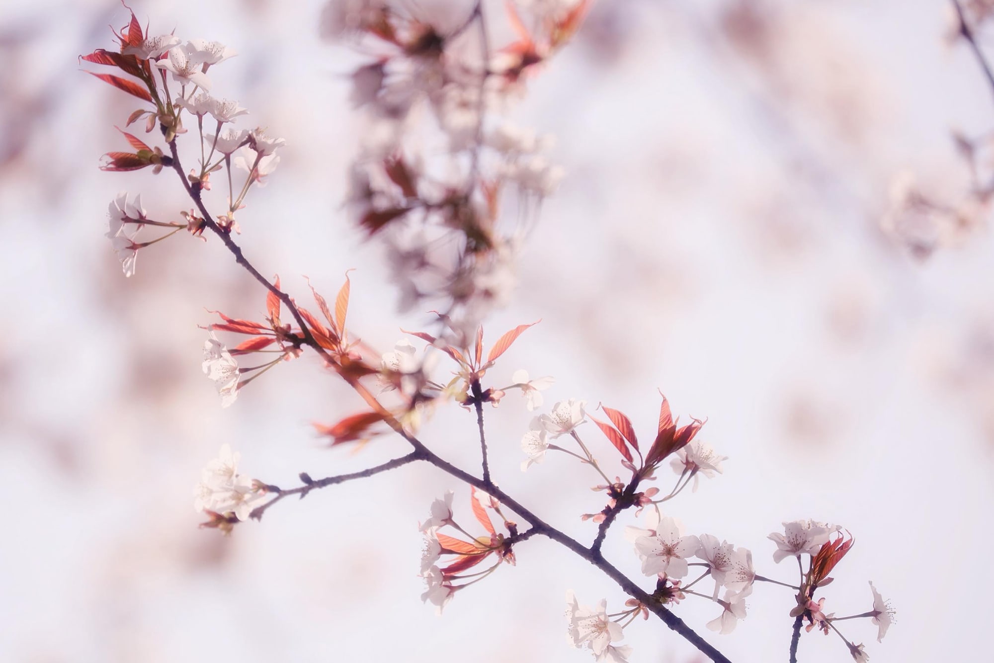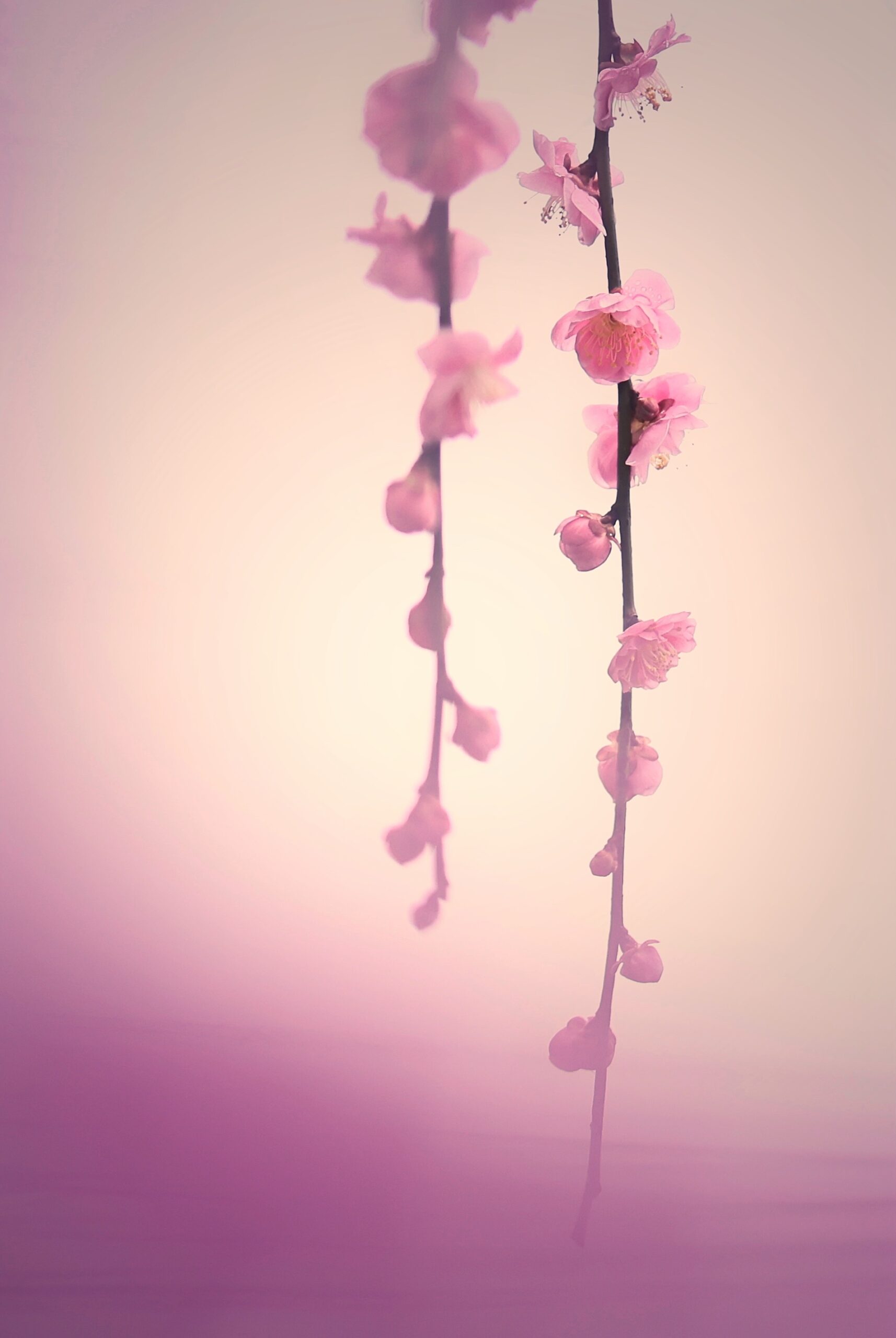 柔らかな陽射しの中の枝垂れ梅を撮りました。